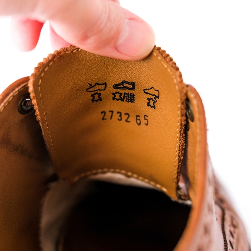 Um merkingar á skóm gilda reglur nr. 381/2007, um merkingar efnis í skófatnaði. Í reglunum er að finna nákvæmar upplýsingar um hvað telst til skófatnaðar, hvernig ber að haga merkingum auk þess sem þar er að finna í viðauka skilgreiningu á efnum og samsvarandi skýringarmyndum sem notast má við. Fyrir neðan má sjá dæmi um merkingar á skóm. Frekari upplýsingar um textílvörur eru hér á heimasíðu Neytendastofu.