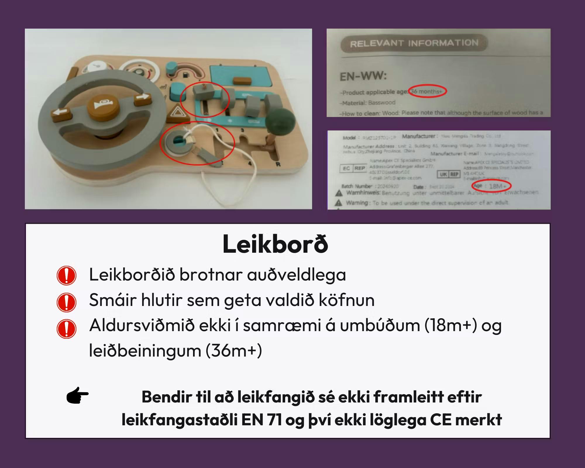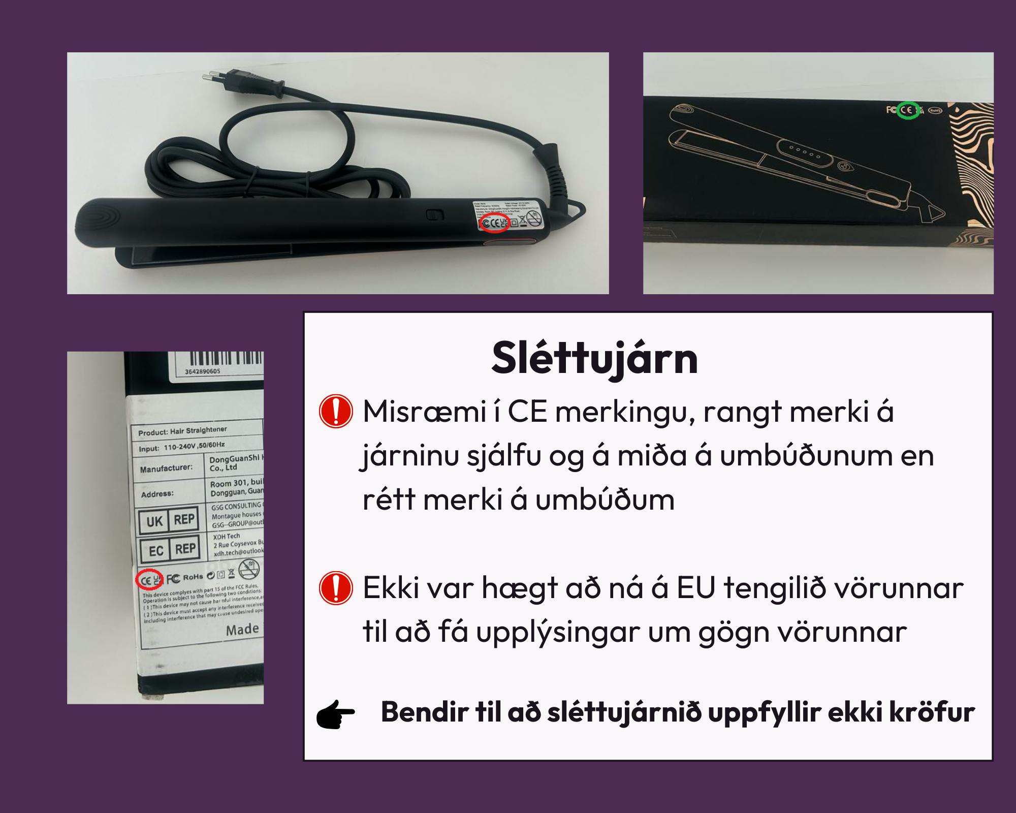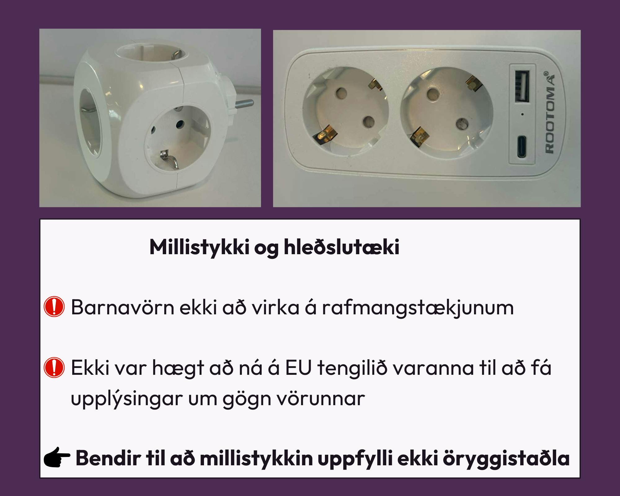 Hér fyrir neðan má sjá samantekt af nokkrum af þeim vörum sem HMS tók til skoðunar og fræðslu um hvernig neytendur getað átti sig betur á hvað ber að varast.