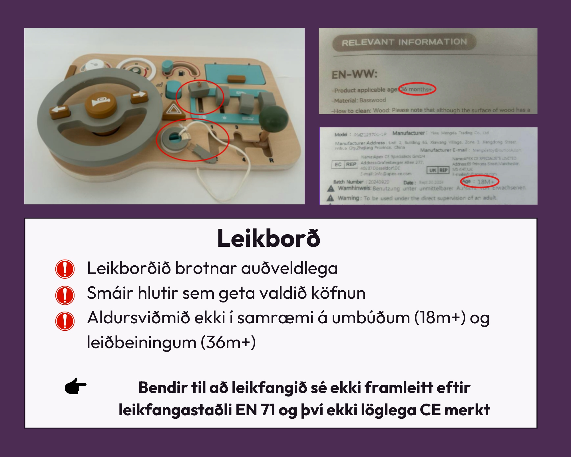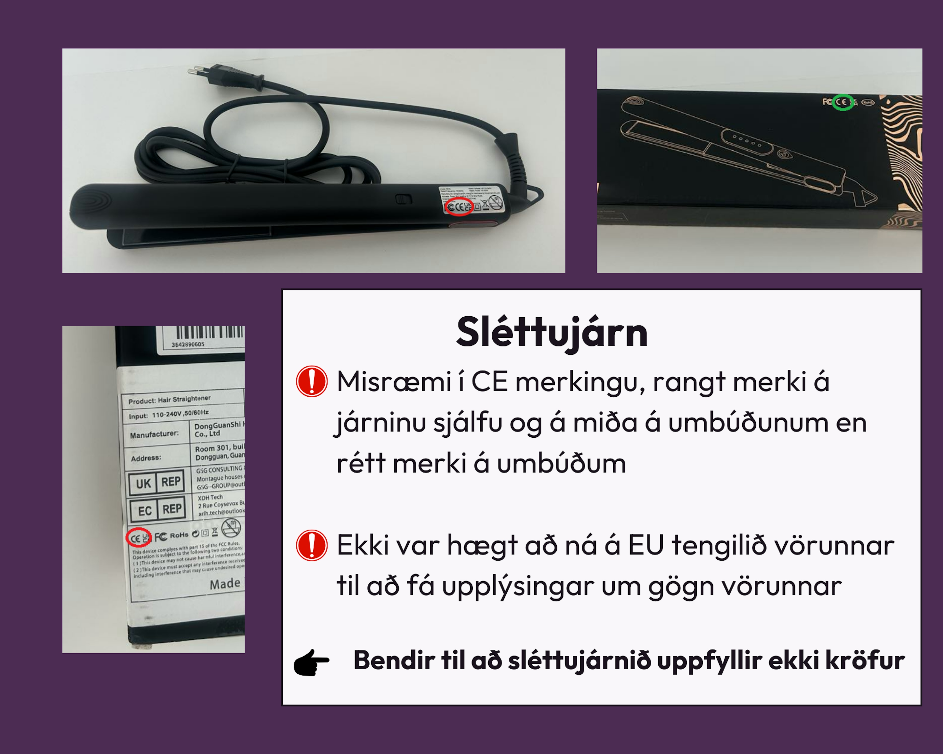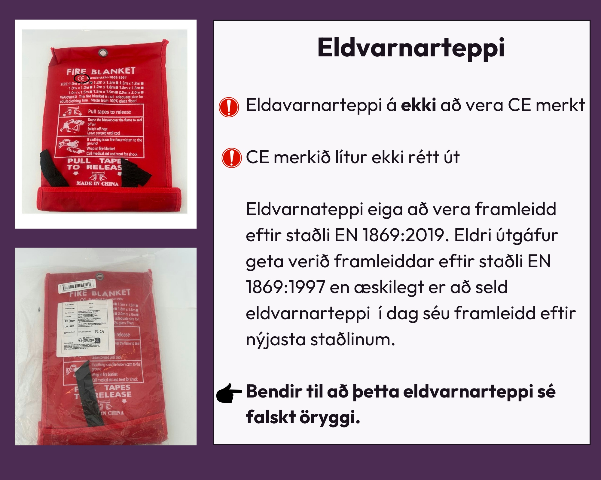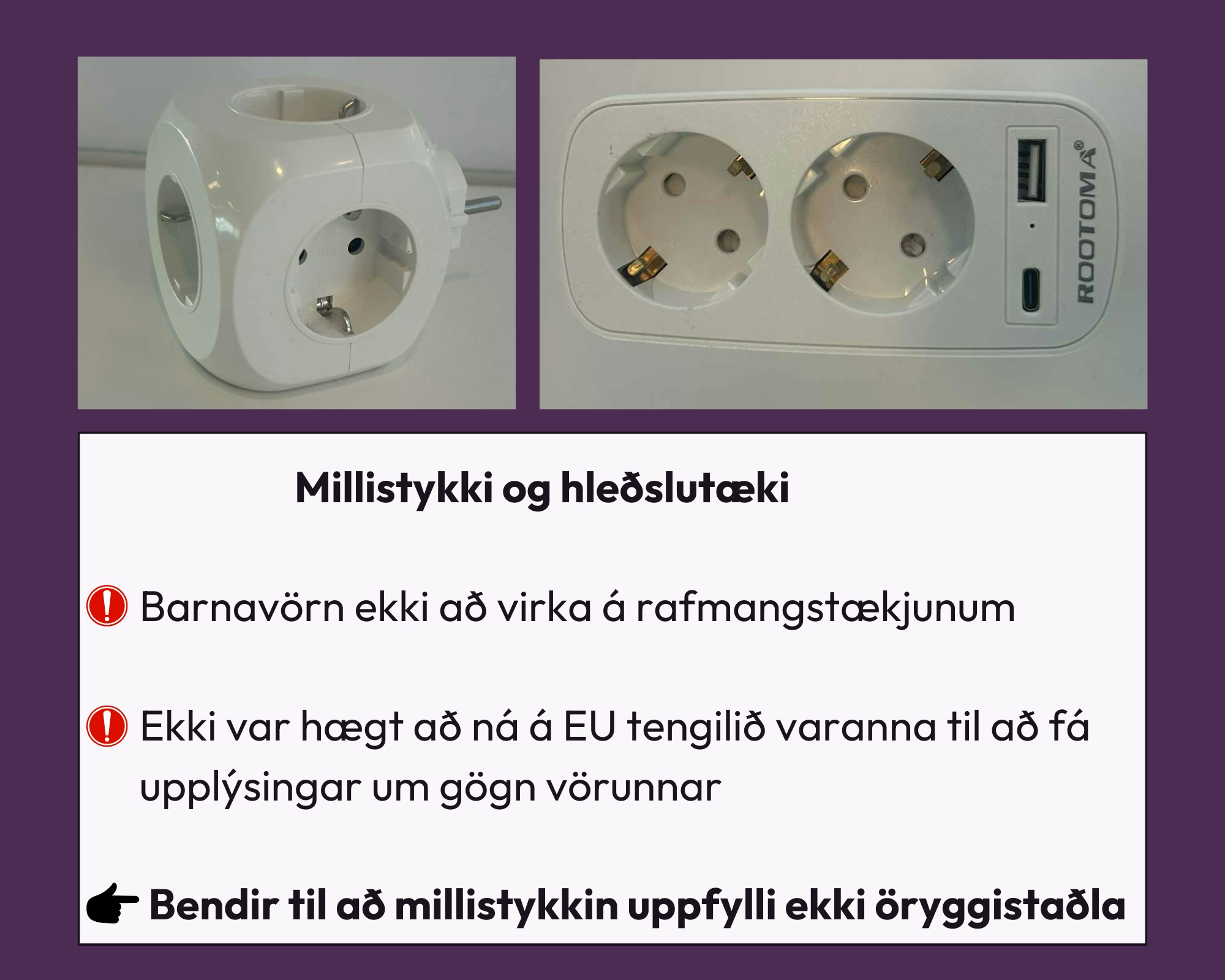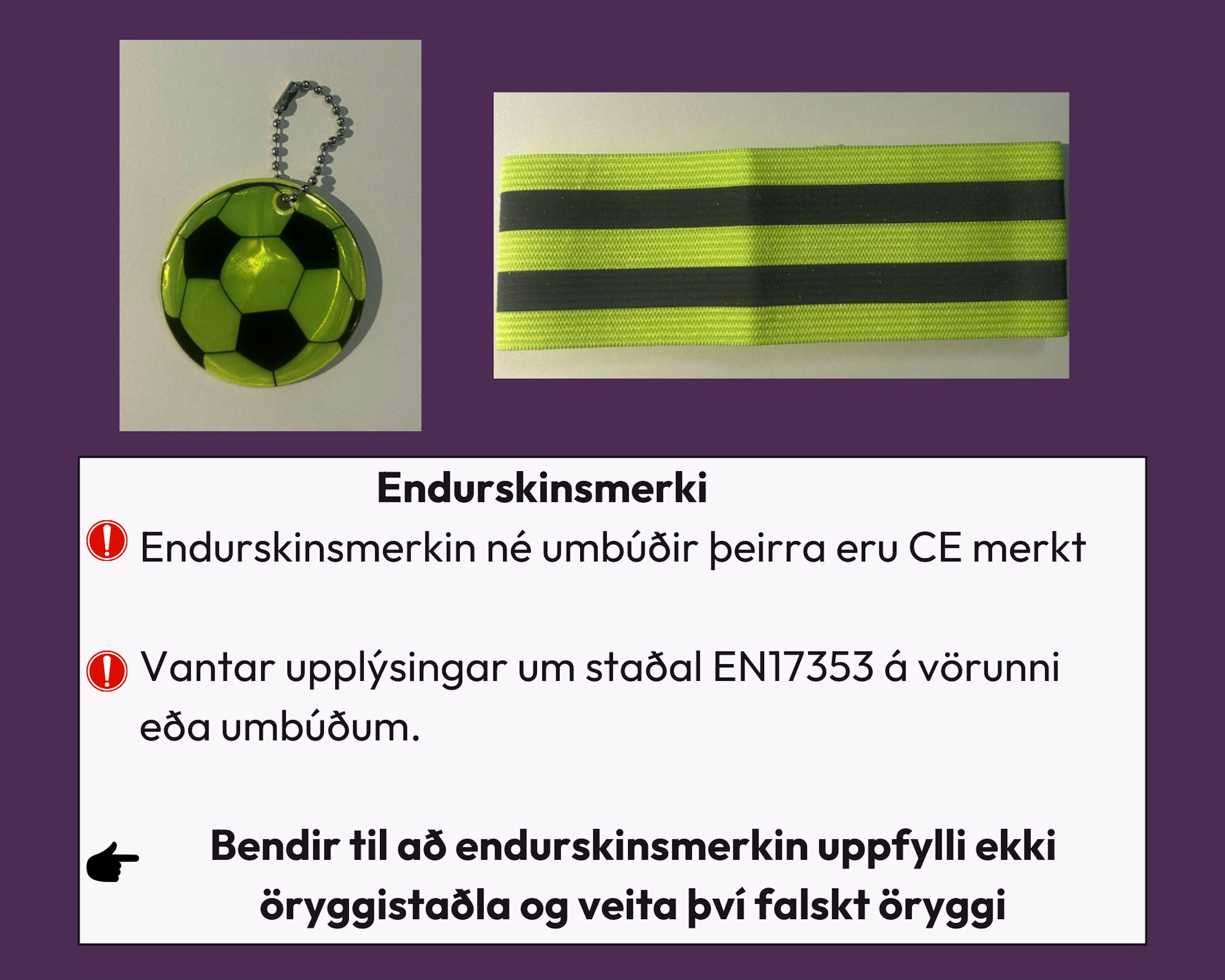 Niðurstöðurnar sýna að í 50% tilvika þá uppfylltu vörurnar ekki gildandi öryggiskröfur, sem bendir til þess að þær hafi ekki verið framleiddar samkvæmt viðeigandi stöðlum.