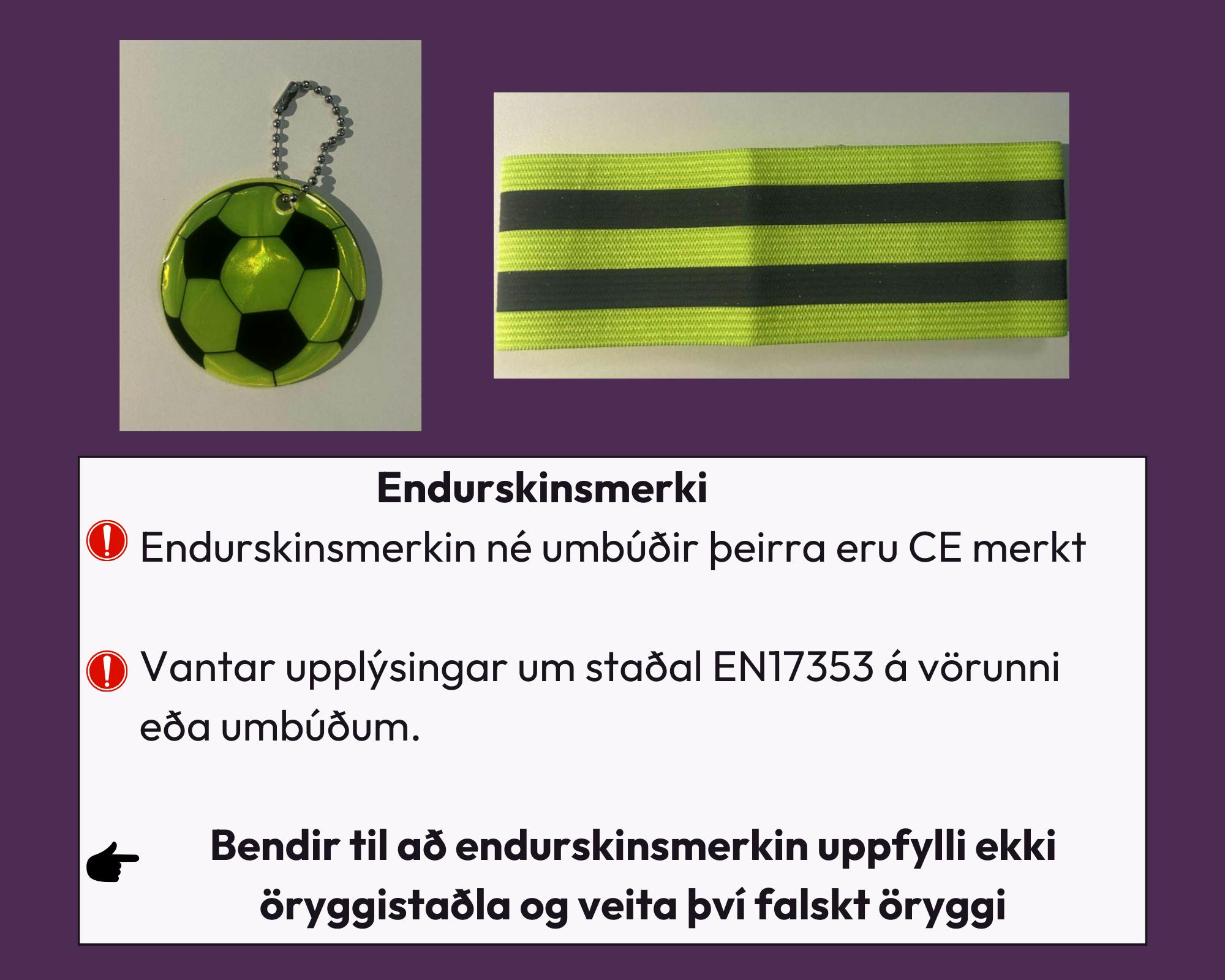 Niðurstöðurnar sýna að í minnsta kosti 50% tilvika þá uppfylltu vörurnar ekki gildandi öryggiskröfur, sem bendir til þess að þær hafi ekki verið framleiddar samkvæmt viðeigandi stöðlum.