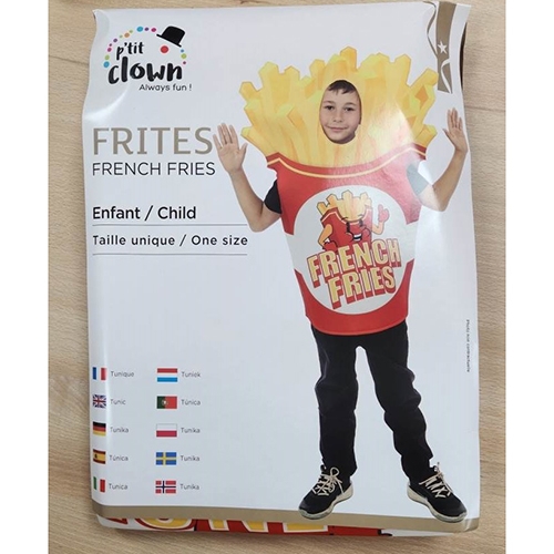 Vakin er athygli á innköllun á grímubúningi sem lítur út eins og franskar kartöflur. Búningurinn er talinn hættulegur þar sem hann er mjög eldfimur og uppfyllir ekki öryggiskröfur leikfangastaðalsins EN 71-2. Búningurinn var seldur í Partýbúðinni.